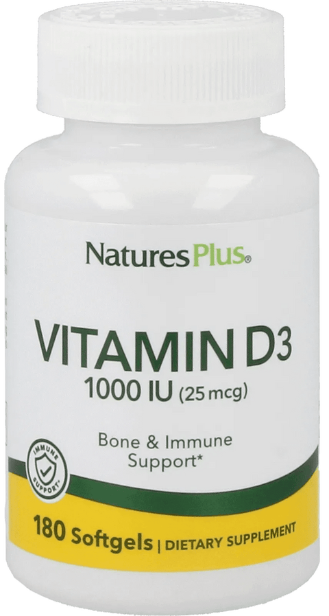 Over het Product: Vitamine D3, 1000 IU (180 Softgelcapsules) - Nature's Plus
